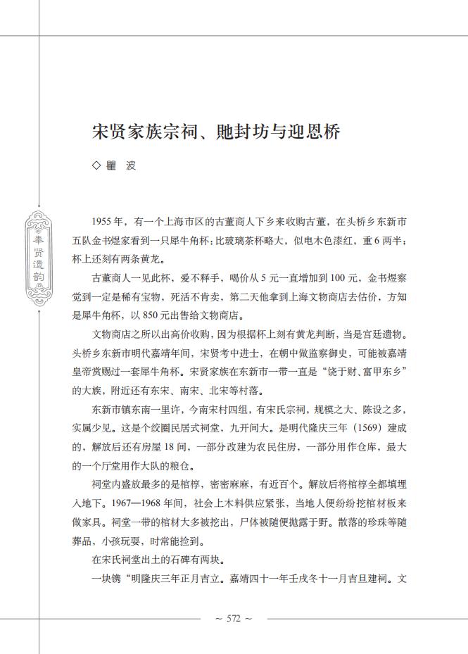 《奉贤遗韵》——宋贤家族宗祠、貤封坊与迎恩桥
