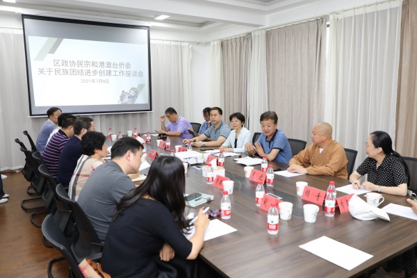 7月9日下午,区政协民族宗教和港澳台侨委联合致公党、台联、侨联界、少数民族界、宗教界界别开展关于民族团结进步创建工作的对口联系活动。区政协副主席吴梅出席活动,民族宗教和港澳台侨委主任张夏清主持会议,区民宗办负责人应邀参加。