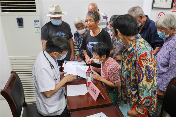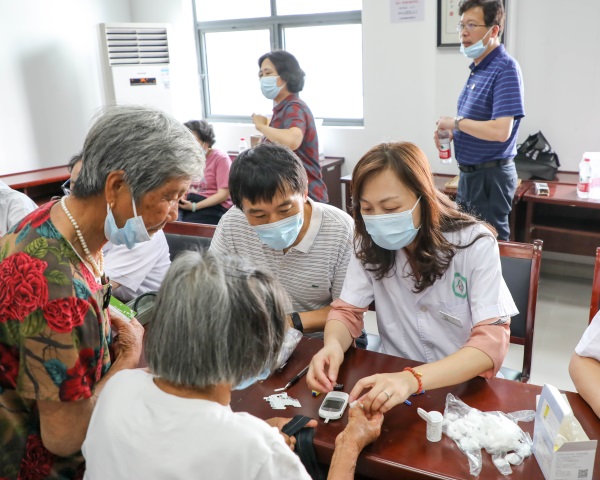 在前期的精心安排和细致沟通下,志愿者主动投入,提前为老年人测温、发放口罩,适当限流控制人数、维持秩序,义诊服务活动现场平稳有序,忙而不乱。本次活动有12位医疗专家参与,开展心内科、神经内科、眼科、内分泌科、儿科、呼吸科、全科、中医科、麻醉科、健康教育等多专业的医疗咨询,同时提供量血压、测血糖服务,共计服务村民200余人次。 “医生,这是我的体检报告,能帮我看看有没有问题吗?” “好的,不急,我一条条看看。” “我有糖尿病,刚测了血糖,控制得还行吗?” “空腹血糖7.2,下次饭后2小时测血糖会比较准。” “我腰痛,不知道要看什么科室。” “这个原因比较多,需要做检查后才能确诊,我每周二门诊,可以来找我。”