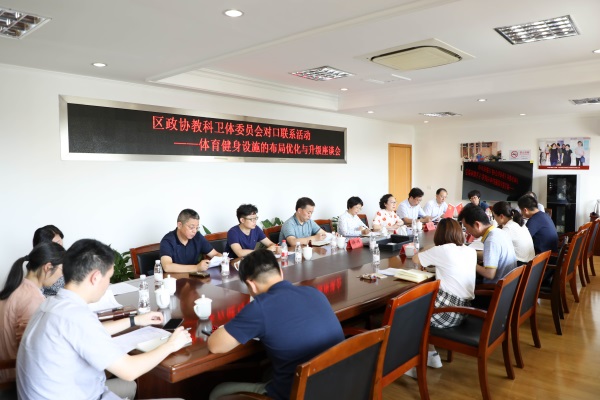 7月16日下午,区政协教科卫体委联合民盟、科协、科技界、教育界、医药卫生界界别代表开展关于我区体育健身设施布局优化与升级的对口联系活动。区政协副主席吴梅出席活动,教科卫体委主任唐瑛主持会议,区体育局主要领导应邀参加。